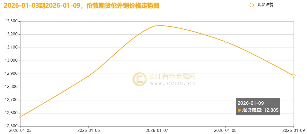 预计下周(1月12日至16日)铜价维持高位震荡格局,价格参考区间【96500-106000】元/吨,伦敦三个月期货铜价区间或在【11000-13500】美元/吨。