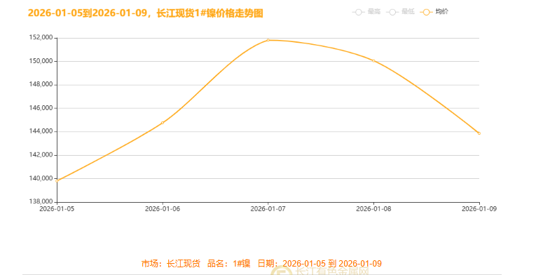 影响本周镍价走势复盘:长江现货市场1#镍价呈现出典型的“倒V型”剧烈震荡走势。全周行情以急涨急跌为主要特征,市场情绪转换迅速。价格从周一开盘约139,800元/吨起步,在乐观情绪推动下连续强势上行,并于周三触及周内高点151,600元/吨,三日累计涨幅显著。然而,高价区域遭遇强劲阻力,随后市场风向骤变,自周三峰值后价格急速回落,在获利了结与抛压影响下连续下行,至周五收盘时已回落至约143,850元/吨附近,几乎回吐前半周全部涨幅。尽管全周收盘价仍略高于周初开盘,勉强录得小幅上涨,但这一明显的“冲高—回落”形态,凸显出市场多空博弈异常激烈,价格在短期内缺乏坚实支撑。后续走势需密切关注当前价位附近的整固情况,以及新的供需平衡点能否形成。本周总均价报146050元/吨,较前一周整体上涨1170元。