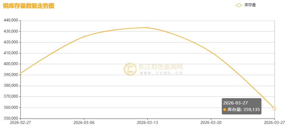 ▲CCMN沪铜社会库存3月份走势图