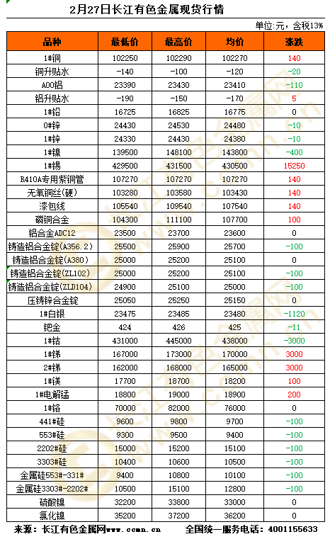 2026-02-27 来源: 长江有色金属网 发布人: yangxf
