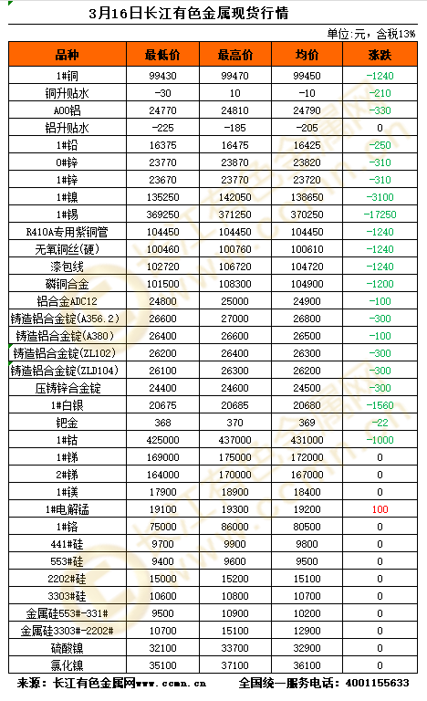 当前位置: 长江有色金属网 > 资讯首页 > 行业要闻 > 3月16日长江有色金属现货行情