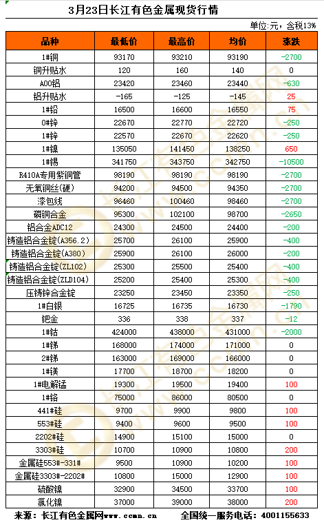 当前位置: 长江有色金属网 > 资讯首页 > 行业要闻 > 3月23日长江有色金属现货行情